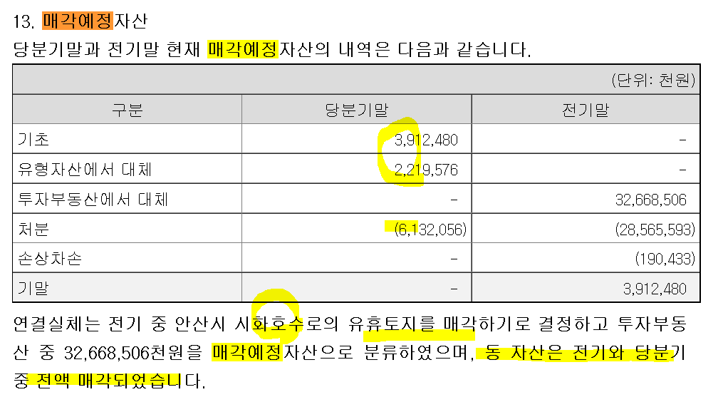1H21 매각예정자산으로 분류해두었던 자산 매각.