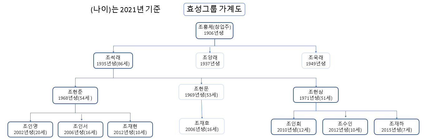 2016년 장남 조현준이 새로운 효성그룹의 회장으로 취임하였다.