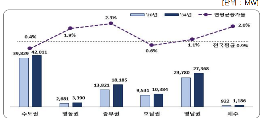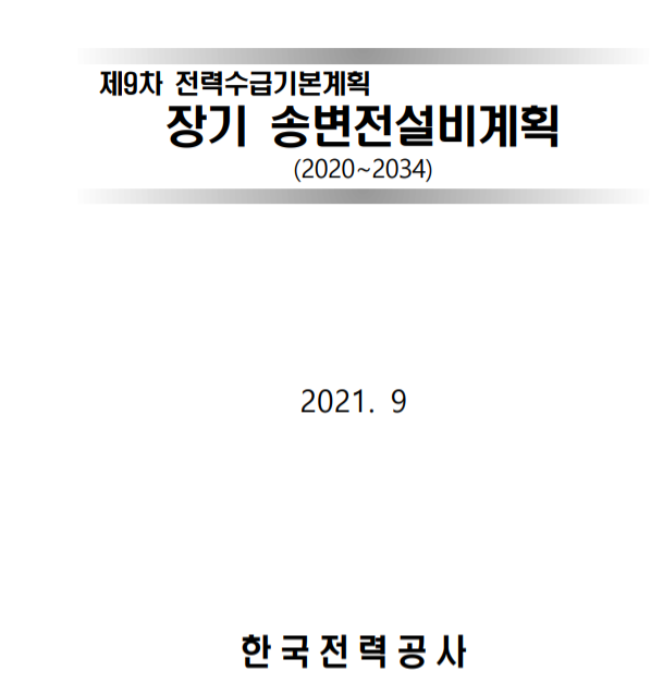 한국전력공사는 21.9.30. 제9차 전력수급기본계획 장기 송변전설비계획(2020~2034)을 발표했다