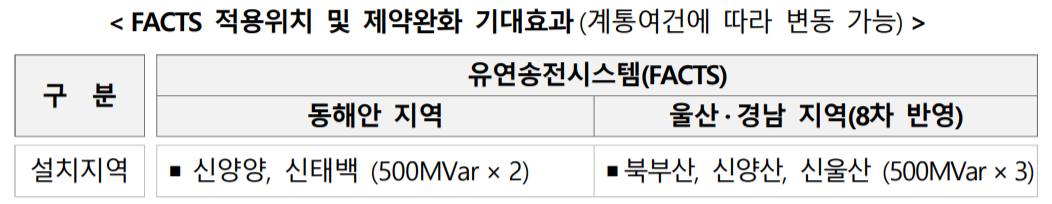 한전은 지난 2016년 대규모 발전단지로부터 전력을 공급하는 과정에서 송전용량이 부족한 지역의 계통 안정을 위해 FACTS 기술 적용 확대를 발표했다.
