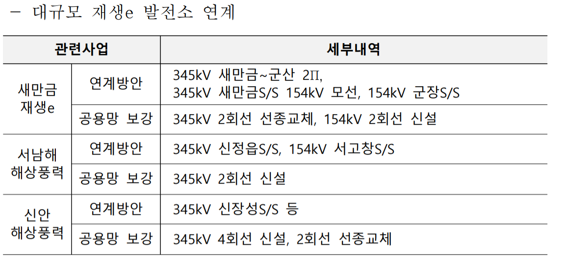 변전 설비와 송전선로를 보강하고, 대규모 재생e는 발전소(변전소.S/S)로 연계하겠다는 것.