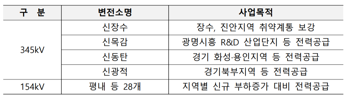 어쨌든 345kV, 154kV 변전소가 전국에 위의 그림처럼 위치하고 있는데, 더 필요해서 신설하기로 한 것.