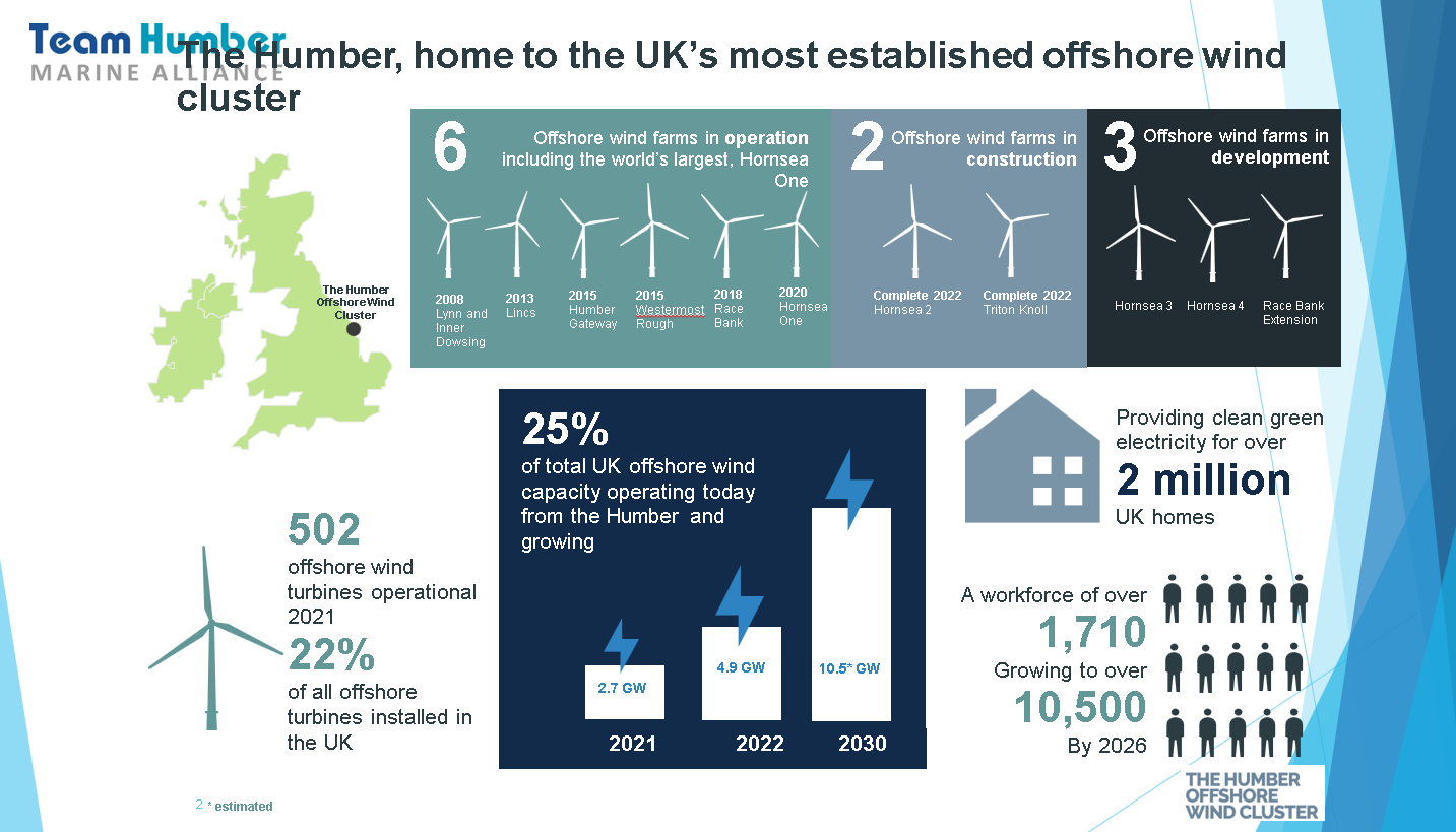 앤드류 올리버 THMA(Team Humber Marine Alliance) 회장은 기업·연구기관·학계 등 해상풍력 생태계를 구성하는 다양한 조직 간 협업체계 구축을 통해 해상풍력 활성화를 이끌고 있는 영국 험버 지역 사례를 소개함. 험버 지역에 위치한 항구를 중심으로 2.7GW 규모의 해상풍력단지 6개가 운영되고 있다고 함.