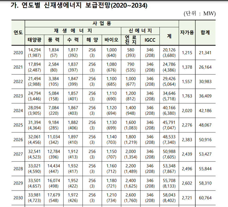 산업통상자원부의 제9차 전력수급기본계획(2020~2034) 부터 시작해 보자.