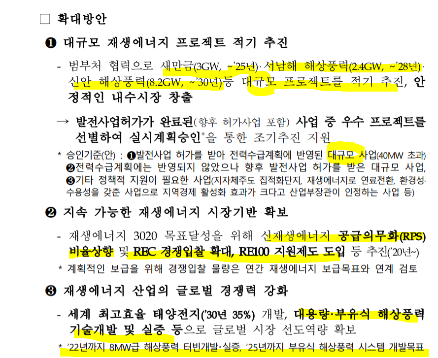 새만금, 서남해, 신안에 대규포 풍력 프로젝트를 추진하는군 → 대규모이기 때문에 한 곳에서 독점하기 보다 여러 업체가 참여하겠군.