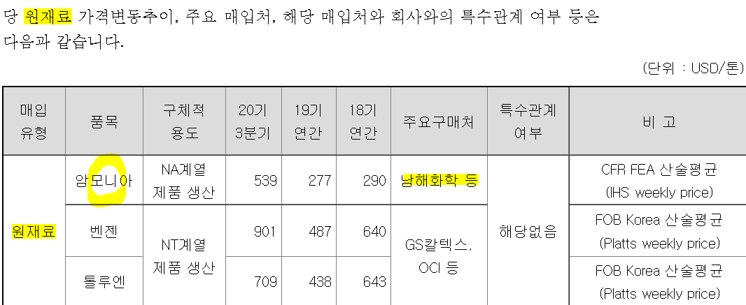 남해화학의 암모니아는 사우디, 인도네시아, 호주에서 수입. 요소는 중국에서 수입.