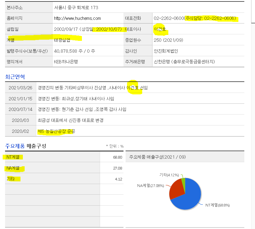 2020.2. 제5 농질산공장 준공 외 최근 연혁으로는 경영진 변동만 보임.