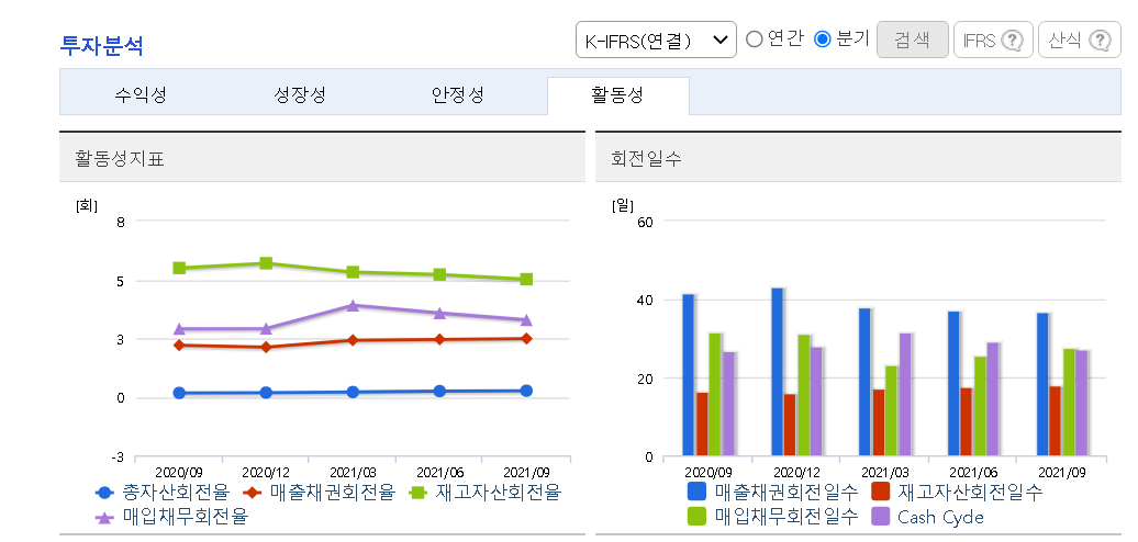 2021년 3분기 누적 매출액이 전년도를 넘어섰음.