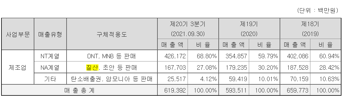 질산, 초안 등 수출 비중 있고 나머지는 내수
