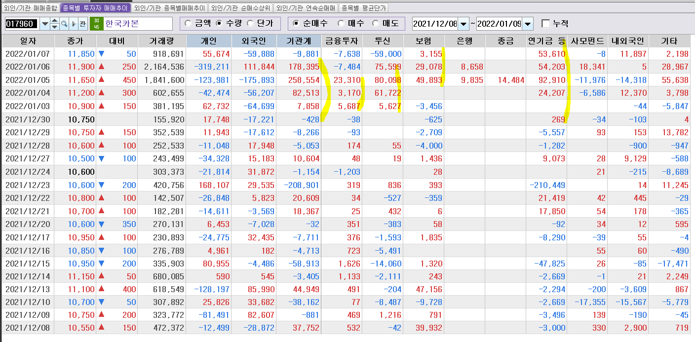 연기금, 금투, 투신, 보험 등 기관들이 주가를 끌어올렸음.