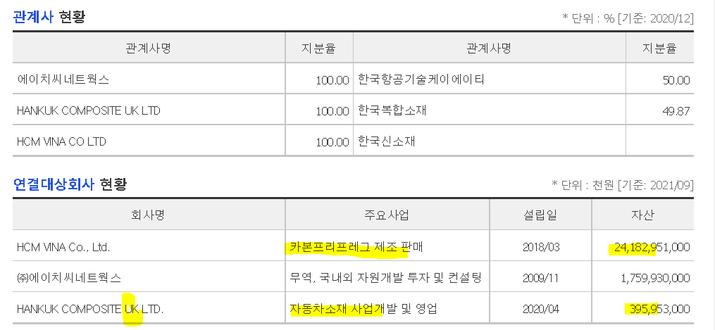 베트남과 영국에서 사업분야가 나눠져 있네(카본프리프레그/ 자동차소재)