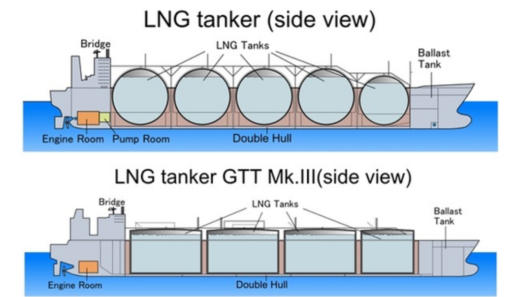 LNG(Liquefied Natural Gas)는 천연가스 운반을 쉽게 하기 위해 액화시켜 부피를 줄여놓은 것인데, 일정 압력과 저온유지 기술력이 필요하고 지금까지 해외에 의존(GTT사)해 왔음.