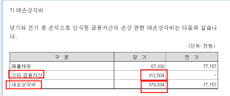 위에서 본 여러개 연결 기업 중 손실 충당금 설정. 당기 중 포함된 3곳에 관한 내용이겠지~ 3억.