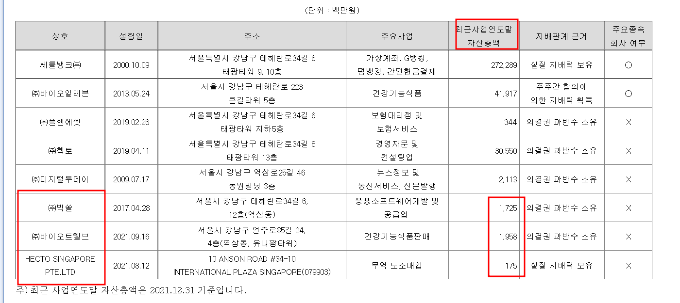 2) 헥토그룹이 순환출자 구조라 개인 주주입장에서 이해하기 복잡하다.