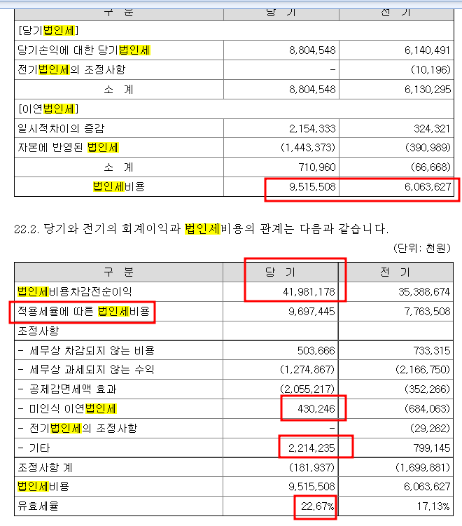 법인세 조정 22억. → 1회성 이슈로 보임.