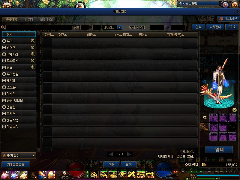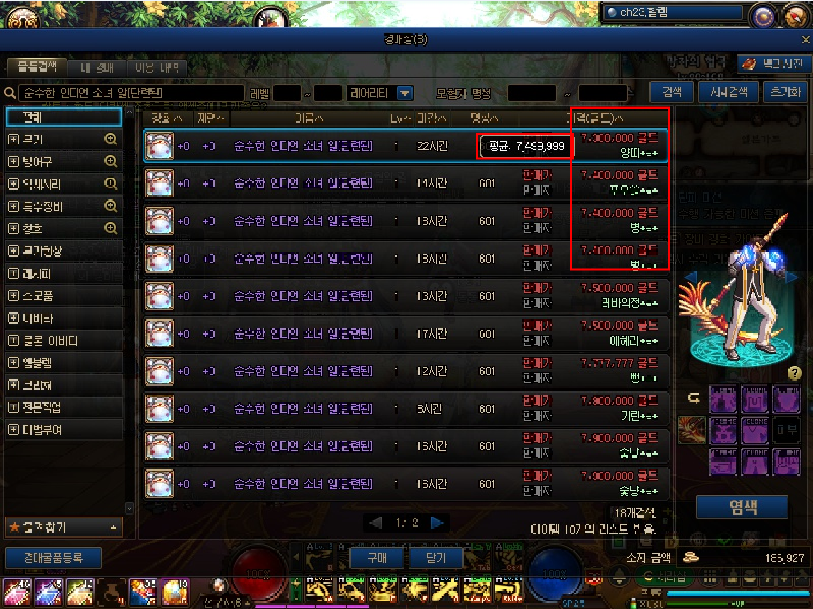 좌측의 [단련된]을 보면, 평균가보다 낮게 매물이 올라오고 있음.