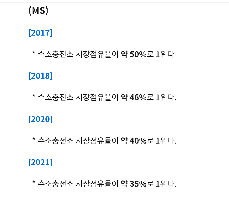 → 수소충전소 부동의 MS 1위. 핵심 밸류체인 확보. 앞으로 충전소 목표량 많이 남아있고, 현재 수소충전소 위치정보 - 무공해차 통합누리집 기준으로 107개임. 시장 확장성 크다는 말.