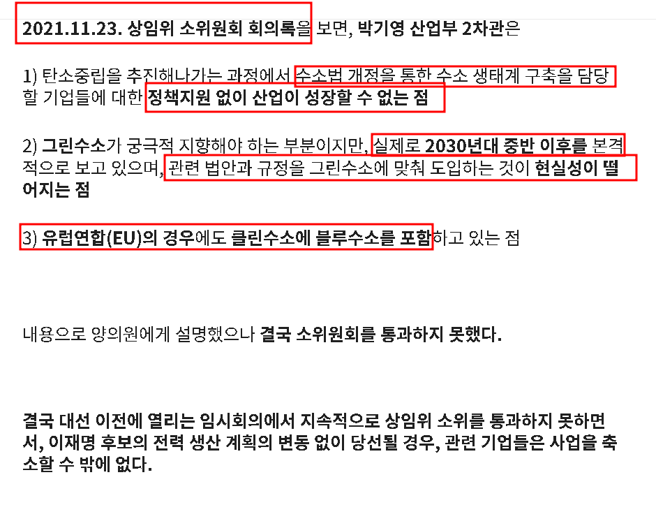 → 그래서 내 생각엔 '대안 의결'에 핑크수소 요구가 수용된 것이 아닐까 추정됨. 물론 회의록 까봐야 알겠지만, 흐름상 그렇지 않은가??
