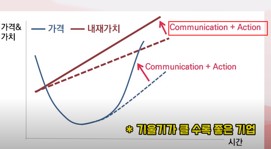 즉 자본배분을 통해 자사주를 매입 후 소각한다던가, 무상증자로 거래량을 활성화시킨다던가, 회사의 배당을 주주와 꾸준히 나눈다던가 등등의 행동이 기업의 내재가치와 주가를 높인다는 것.