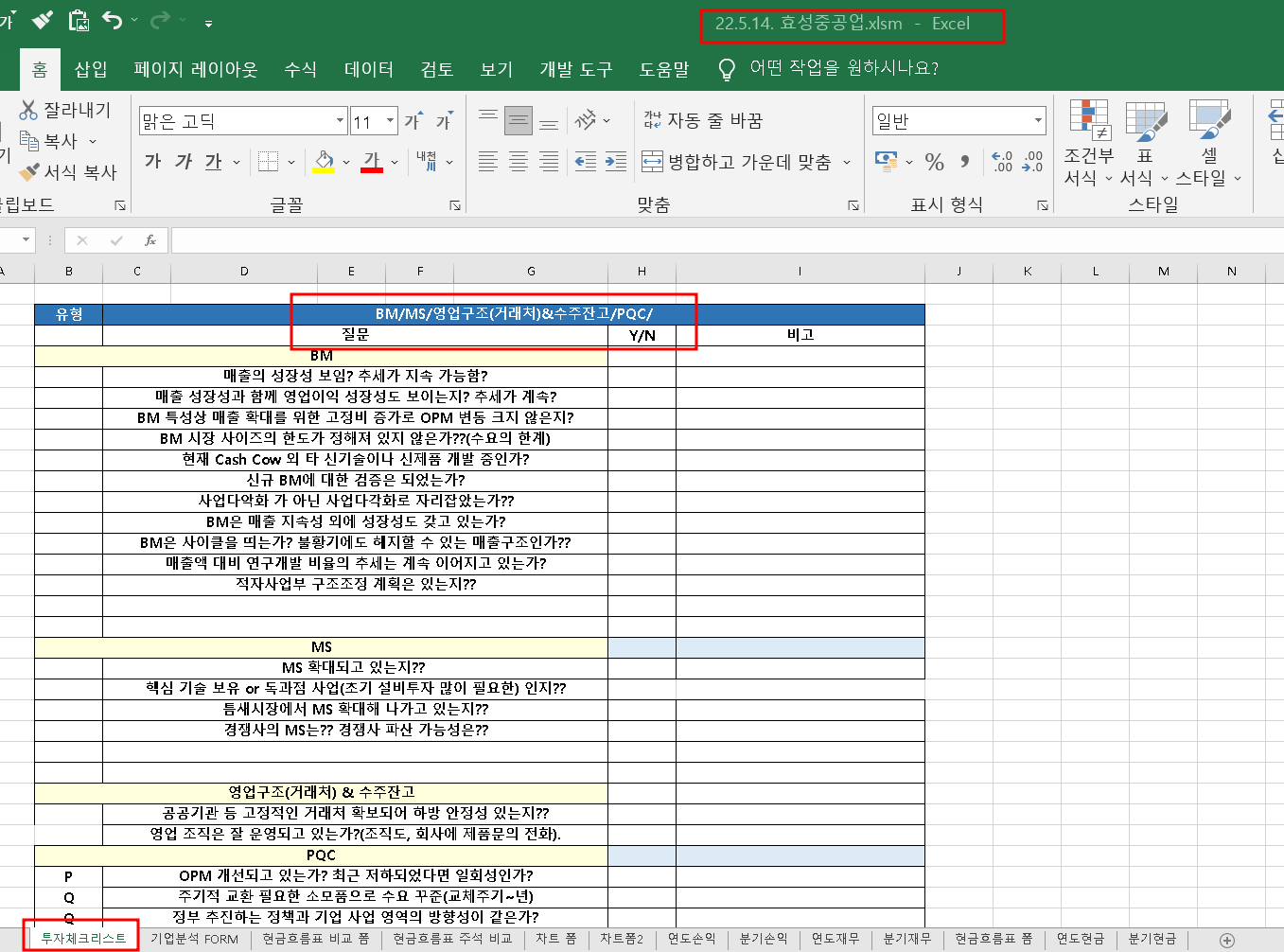 사실 나도 한때 꽂혀서 투자체크리스트 만들고 해 봐야지 했지만 ㅋㅋㅋㅋ