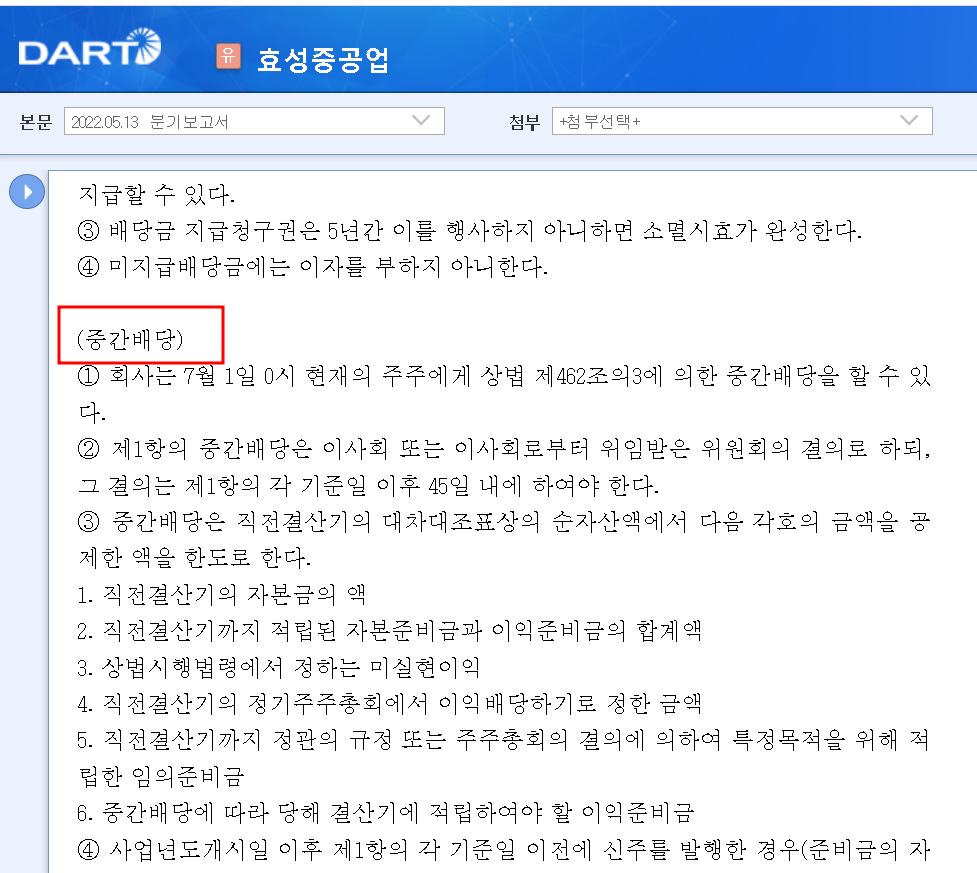 중간배당도 넣어는 뒀어 ~ 당장 하지는 않을 거지만..