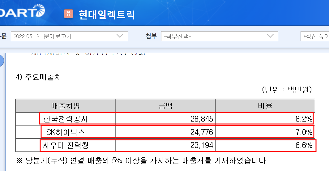 주요매출처로 한전/SK하이닉스/사우디 전력청이 보임.