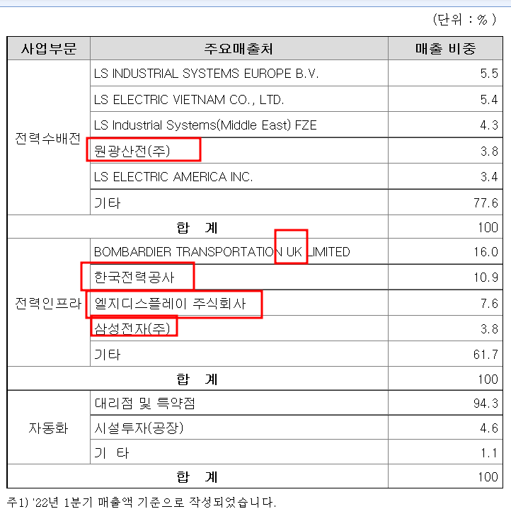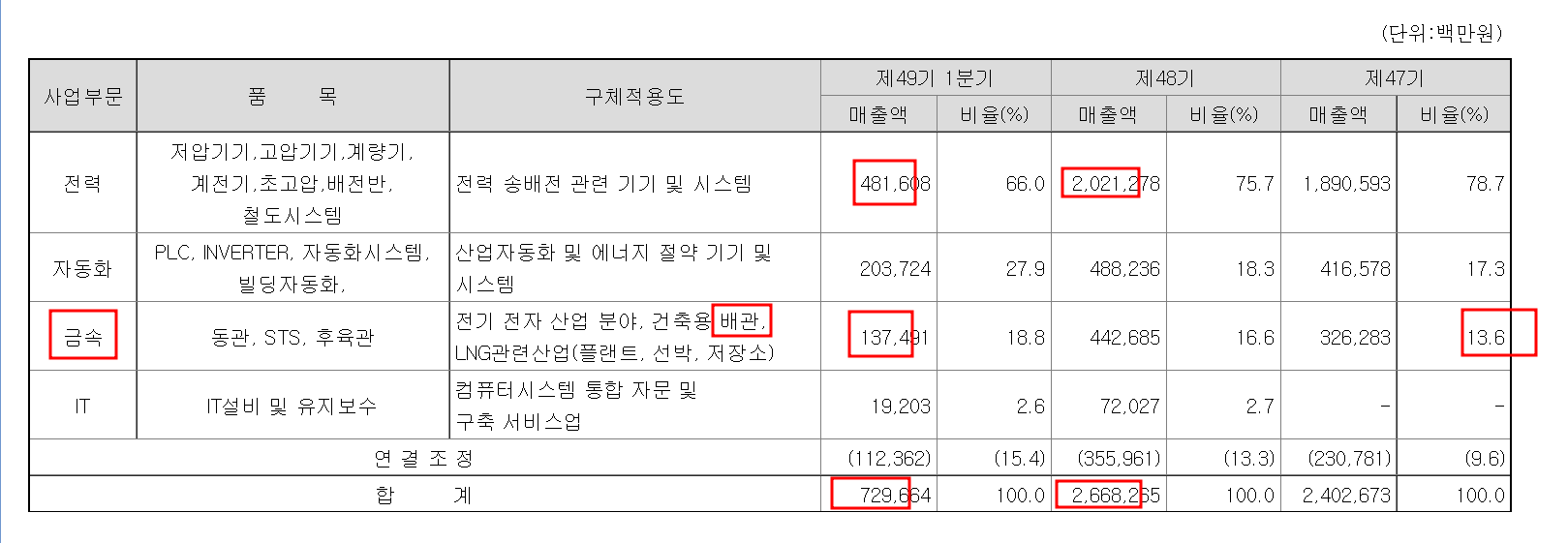 전력과 배전을 나눠둔 것이 인상적임. 큰 매출 비중은 변압기, 고압차단기에서 나오네.