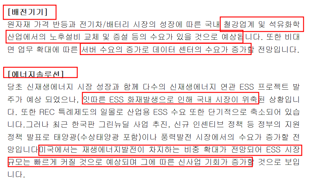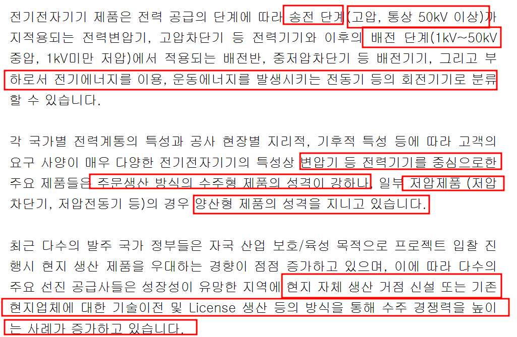 핵심이 전력기기인 것 같은데, 여기서도 경쟁이 심하군. 각 시장별 상황을 설명해 줘서 좋다