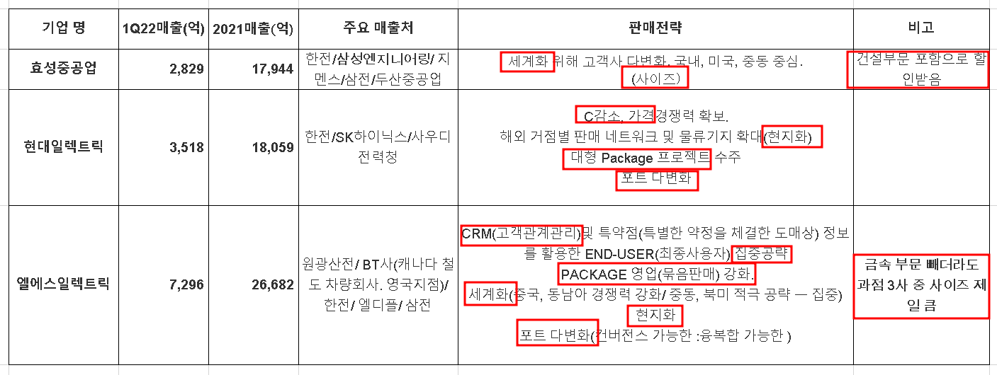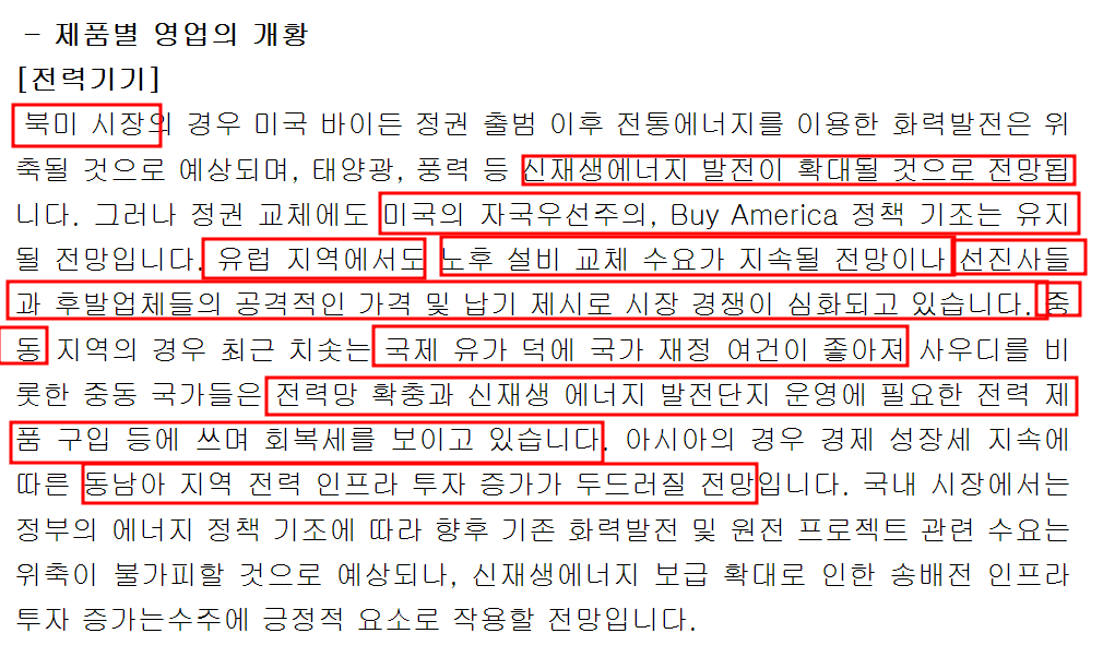 효성중공업 사업보고서에서 부족한 설명을, 경쟁사 사업보고서를 통해 채워보고, 부족한 부분은 산업분석을 통해 채워보자.