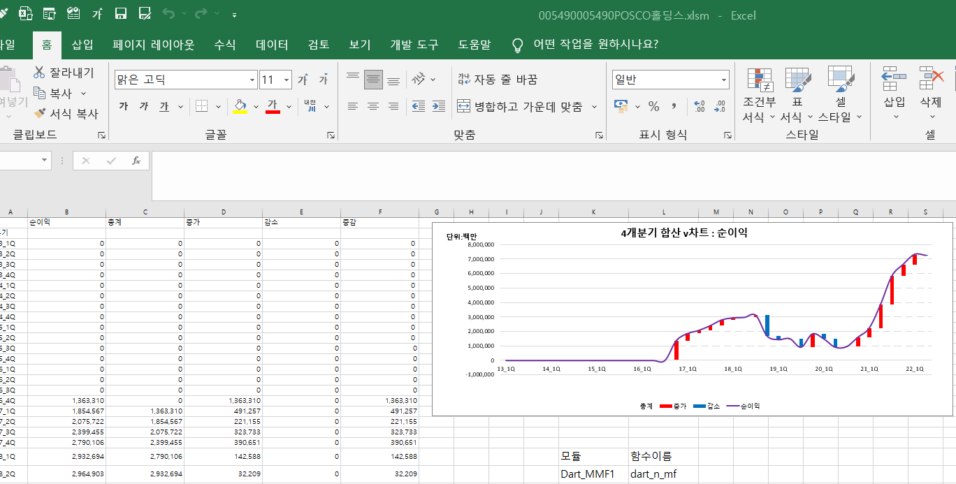사실 처음에는 퀀트 투자보다, 재무정보 4개분기 합산 V차트로 뽑아내는 툴을 만들어보자 라는 마음으로 시작했는데, 이제는 뭔가 퀀트에 더 관심이 생겼음.