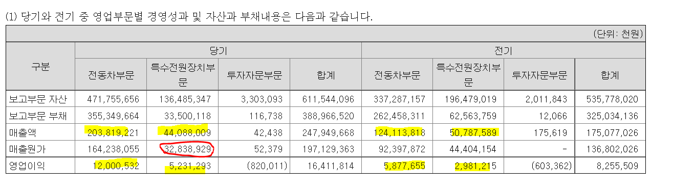 특수전원장치부문 OM(Operation Margin)의 증가는, 매출원가의 큰 감소 덕분으로 보인다.
