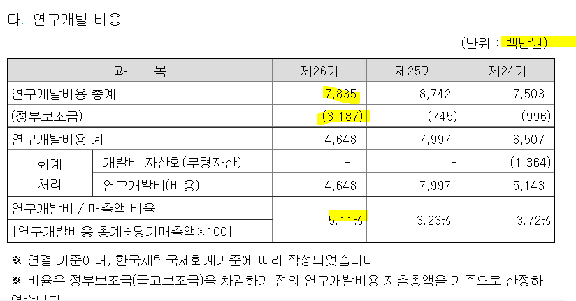 ㅡ연구개발비 증가 36.9억 -> 78.3억/ 정부보조금 16.2억 -> 31.8억
