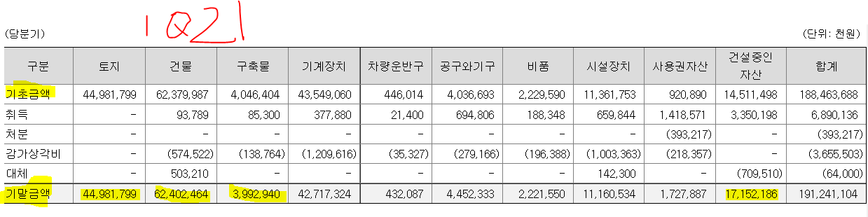 ㅡ반기보고서에서 크게 달라진 점은, 생산설비를 기초&기말 -> 취득원가&장부금액으로 변경한 것.