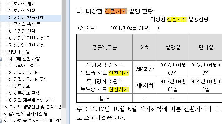 ㅡ 뭐야?? 우리회사 (자본금 변동사항)에 전환사채 없어졌잖아. 뭐지 호재인가??
