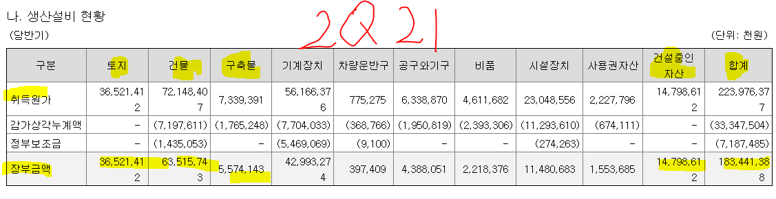 ㅡ반기보고서에서 크게 달라진 점은, 생산설비를 기초&기말 -> 취득원가&장부금액으로 변경한 것.