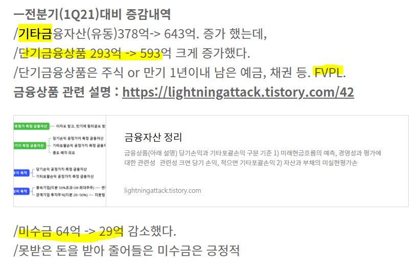 장단기금융상품의 증가. 283억 ->801억. 2탄내용.