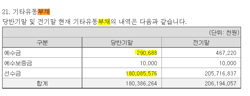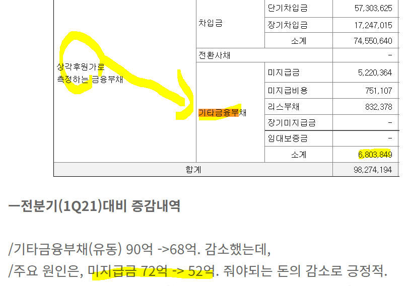 기타부채의 감소 166억 -> 258억. 증가.기타유동부채라고 쓰다가, 기타부채라고 바꿈.