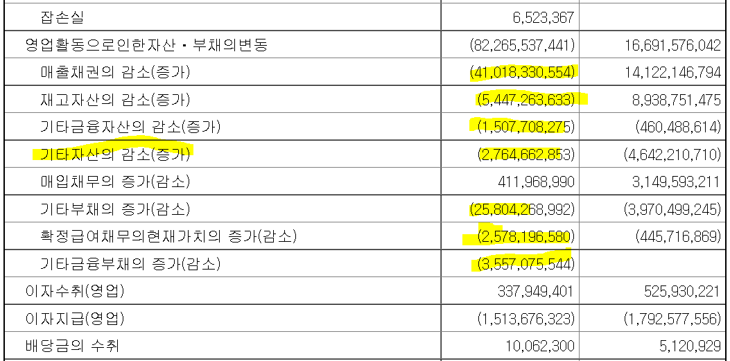 그렇다면 지금 현금흐름 상황은 어떤 의미를 보이고, 어떤것을 자세히 확인해야 할까??