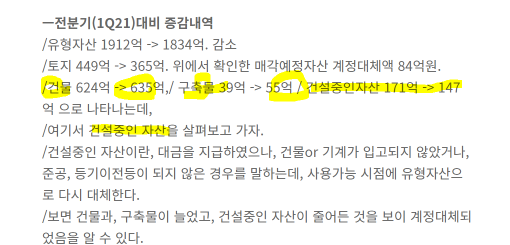 1분기 투자활동 +는 실적분석 2편에서 알아봤듯이 경기도 안산시 시화호수로의 유휴토지(2년이상 본 용도로 사용 x)를 매각했기 때문임을 추정할 수 있다/