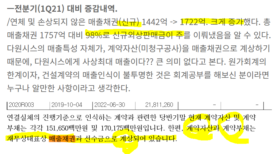 | 다원시스 자문자답. 2021년 2분기 실적.2021 반기보고서. 상반기 실적 분석 2Q21. 정밀분석 1탄. (0) | 2021.08.14 |