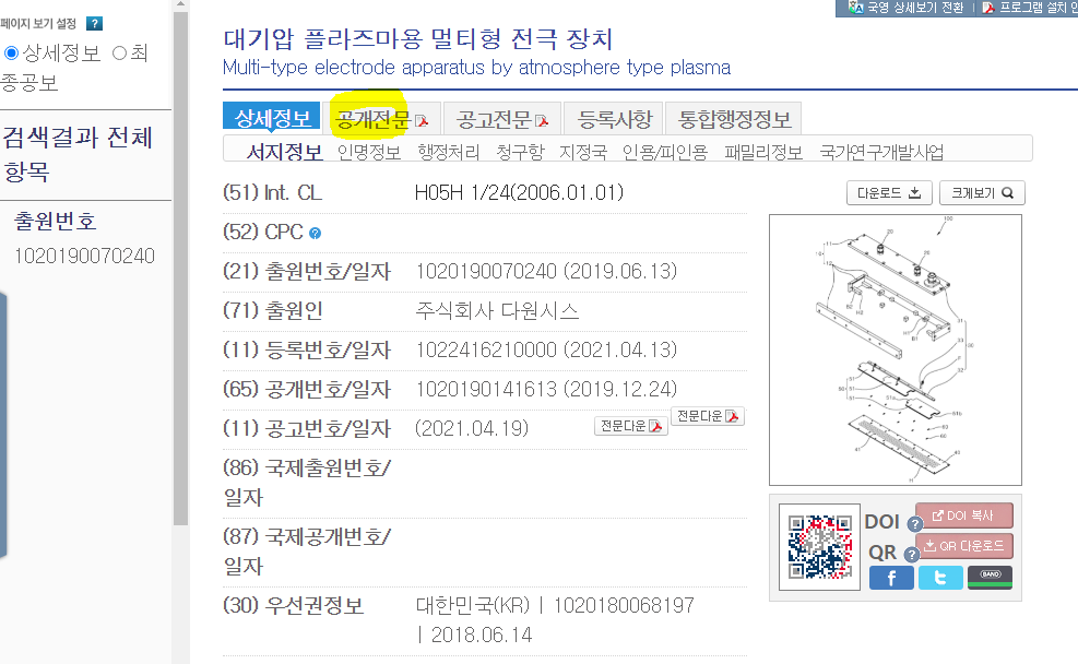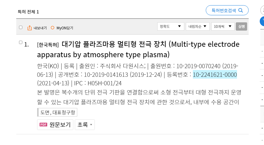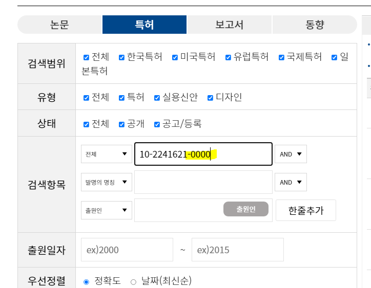 ㅡ반기보고서에서 확인한 특허현황을 좀 뒤져보려고 하는데 여기서 등록번호가 중요하다.