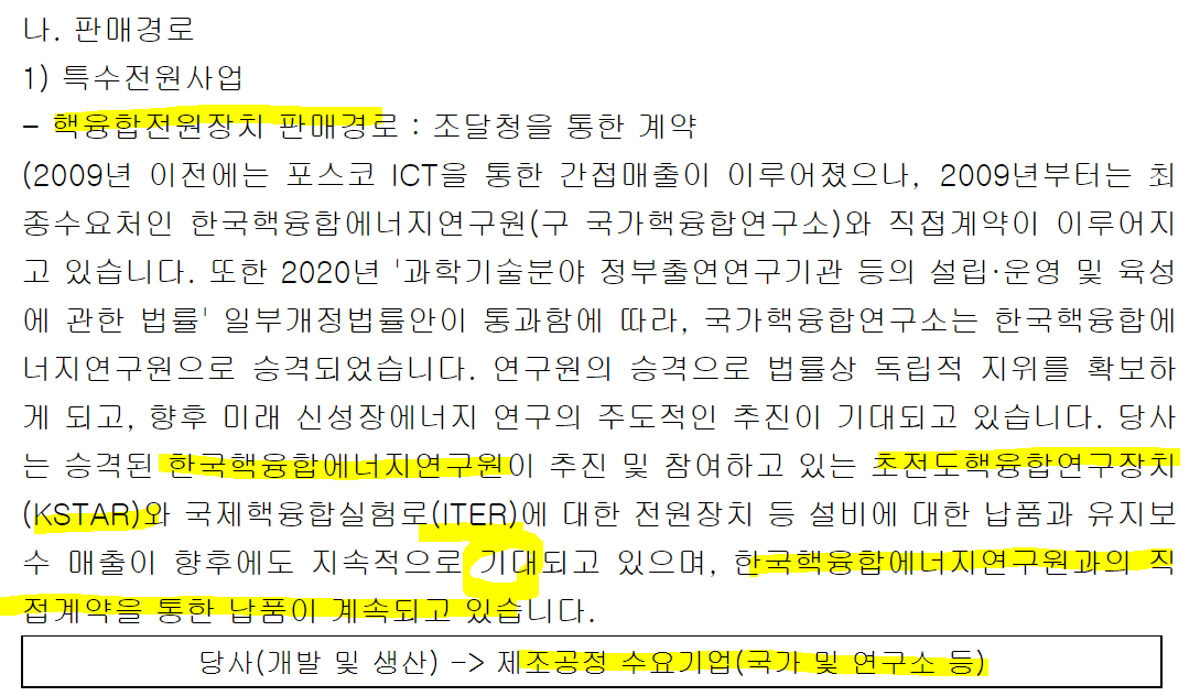 ㅡ 정리를 해보면, 다원시스는 한국핵융합에너지연구원에서 추진하고있는 KSTAR(초전도핵융합연구장치)에 직접계약을 통한 납품을 하고 있고, ITER(국제핵융합실험로)에 대한 납품은 예전에 한 번 한 적 있고 지금은 계획은 없음.