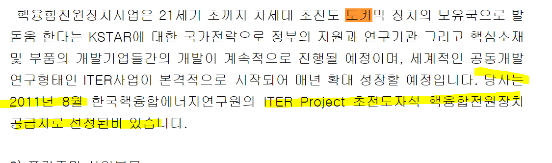 ㅡ 정리를 해보면, 다원시스는 한국핵융합에너지연구원에서 추진하고있는 KSTAR(초전도핵융합연구장치)에 직접계약을 통한 납품을 하고 있고, ITER(국제핵융합실험로)에 대한 납품은 예전에 한 번 한 적 있고 지금은 계획은 없음.
