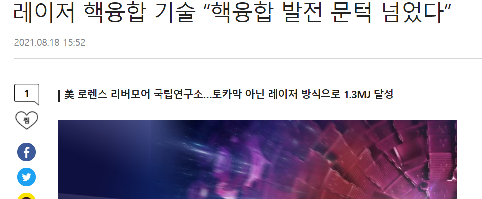 /레이저방식이 핵무기 기술 방식과 같아 비공식 공개를 한다고 하네, 상용으로는 토카막이 앞선다고 하네,