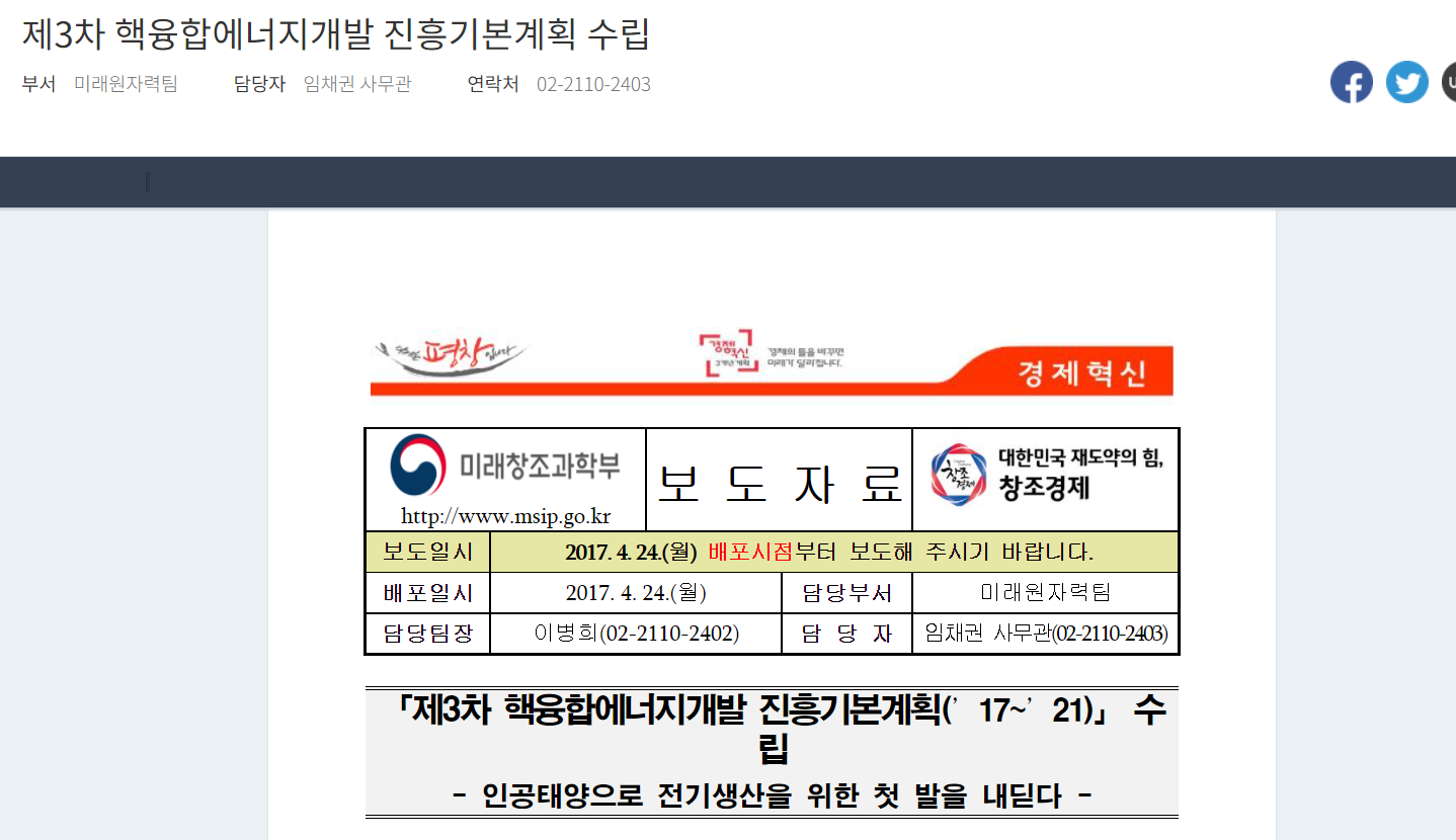 16-1. 제3차 핵융합에너지개발 진흥기본계획('17~'21)ㅡ다원시스 IR자료. 22년 이후로 관련 추가 계획은 있는가?? 매출상승계획은?? 가능성은??