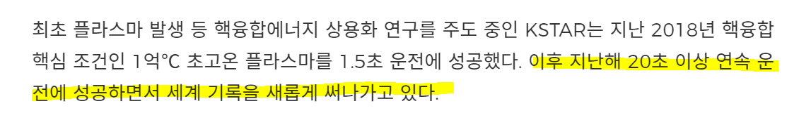 /19년까지는 1억도 1.5초 달성이 최고기록이었네.