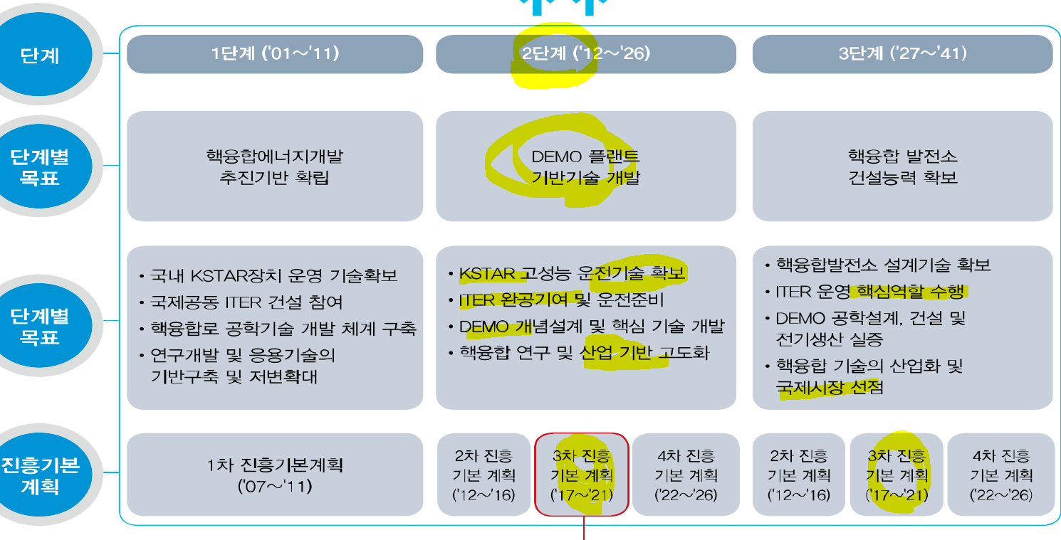ㅡ 지금은 3차 행융합에너지개발 진흥기본계획 단계잖아?? 이거는 언제 수립했고, 4차는 언제 또 수립할까??