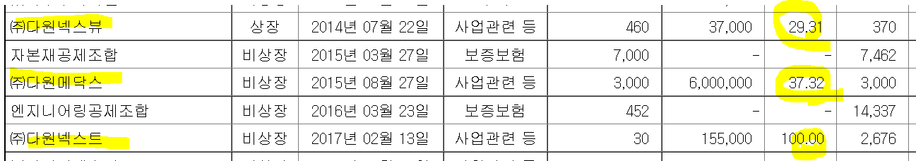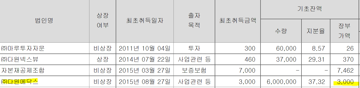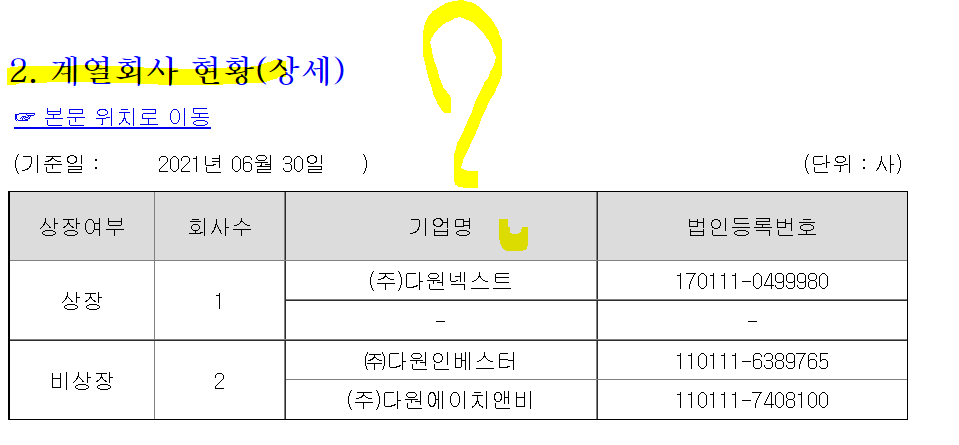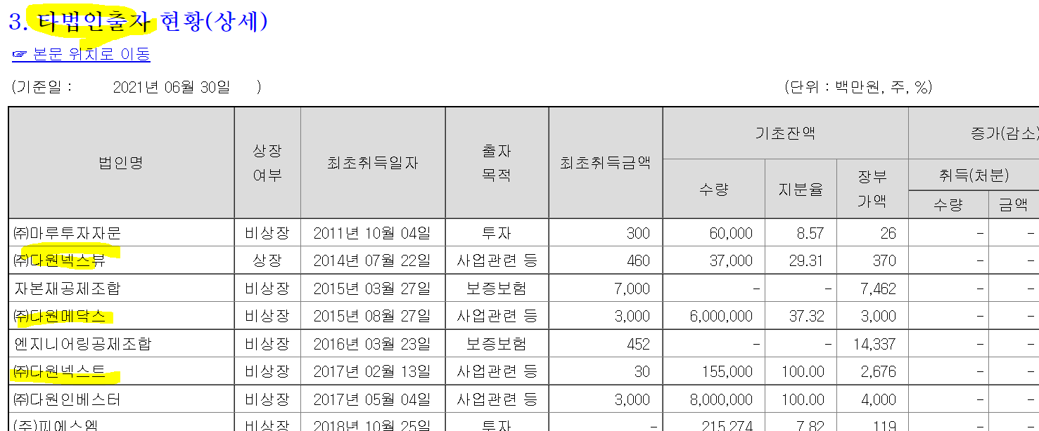 /주2) 다원인베스트가 지분 60% 가지고 있는 자산총액 2.3억짜리 유통업 다원에이치엔비도 함께 잡혔다.