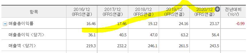 ㅡ매출원가 감소로 매출총이익률이 높아지는 추세로 보인다.