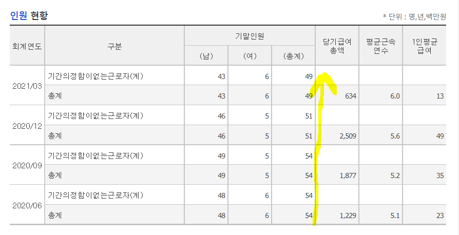 ㅡ근무인원수의 점점 줄어드는 것은, 단기순손실로 인한 판관비 감축으로 보인다.